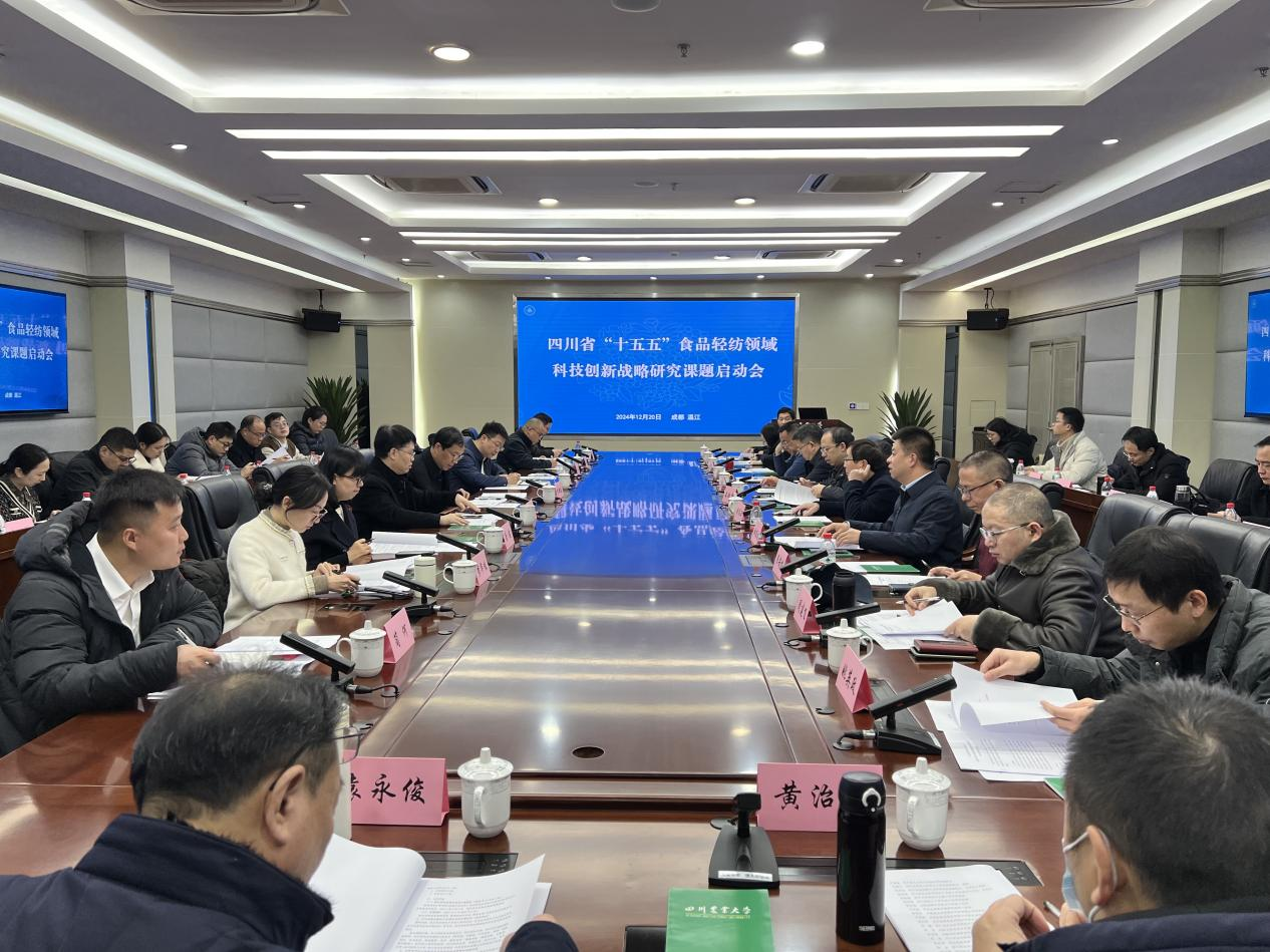 12月20日,四川省“十五五”食品轻纺领域科技创新战略研究课题启动会在我校成都校区召开。副校长王际睿教授,四川省科学技术厅农林与资源环境科技处处长李朝圣、干部陈兴,四川省经济与信息化厅酒业发展处处长李晨、酒业研究和发展中心干部简何,及企业代表和项目课题组成员共30余人参加会议。会议邀请中国农业科学院都市农业研究所所长张德权、四川东坡中国泡菜产业技术研究院院长陈功、西华大学食品与生物工程学院院长唐洁、中国白酒学院副院长赵金松、省农业科学院农产品加工研究所所长李华佳作为课题咨询专家莅临指导。我校科技管理处、新农村发展研究院(乡村振兴学院)、必赢亚洲bwin官网等相关负责人参会。会议由杜俊波主持。