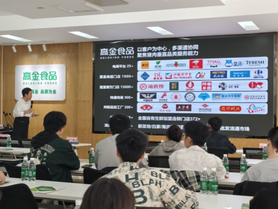 下午,高金轮值CEO杨莉以“食品行业趋势与企业未来”为题,剖析生鲜产业链,预制菜、健康肉制品等赛道机遇,并强调不断学习进步才能让企业发展得更好、走得更远。营销总监助理羊菊红、遂宁公司生产副总经理刘子琪、食安管理部部长张春分别从营销与销售的区别与关系、生产经理岗位解析、食品专业职业发展路径等角度,结合案例分享了企业实战经验。