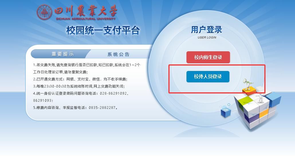 3.推免生缴纳复试费120元(推免生报名数据要待研招网推免系统报名完成之后,才可以下载导入学校财务系统,所以缴费系统可以晚一点再登录)