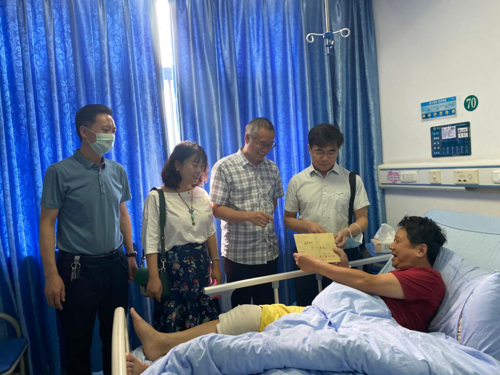 7月3日上午,必赢亚洲bwin官网工会主席、党委书记曾小波、必赢亚洲bwin官网院长李诚、党委副书记侯维,行政办主任陶永清,来到雅安市人民医院看望受伤退休教师苏赵。