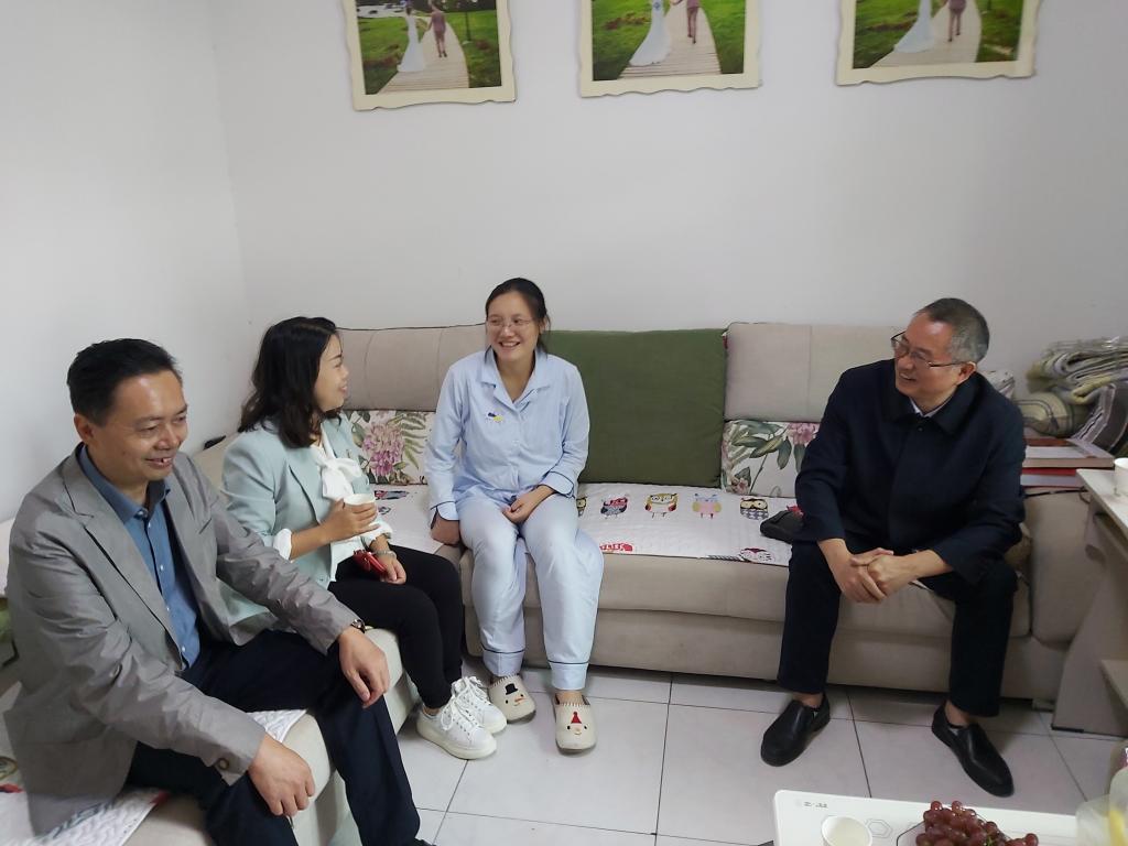 2020年9月29日,必赢亚洲bwin官网工会主席、党委书记曾小波、党委副书记侯维,行政办主任陶永清等,一行专程前往看望慰问产后的女职工沈黎。曾主席代表学院工会及领导班子表达了对女员工的亲切慰问和祝贺,并送上慰问品,嘱咐她照顾好宝宝,好好保养身体,尽快恢复。沈黎同志对学院工会的关怀表示感谢,并表示一定会早日回到工作岗位中。