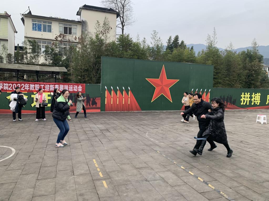 2022年1月13日下午,必赢亚洲bwin官网工会组织教职工在雨城区钓鱼台休闲庄开展迎新趣味运动会。学院党委书记秦文、副院长张志清、党委副书记部门工会主席汤瑞瑞及全体在校教职工50余人参加。