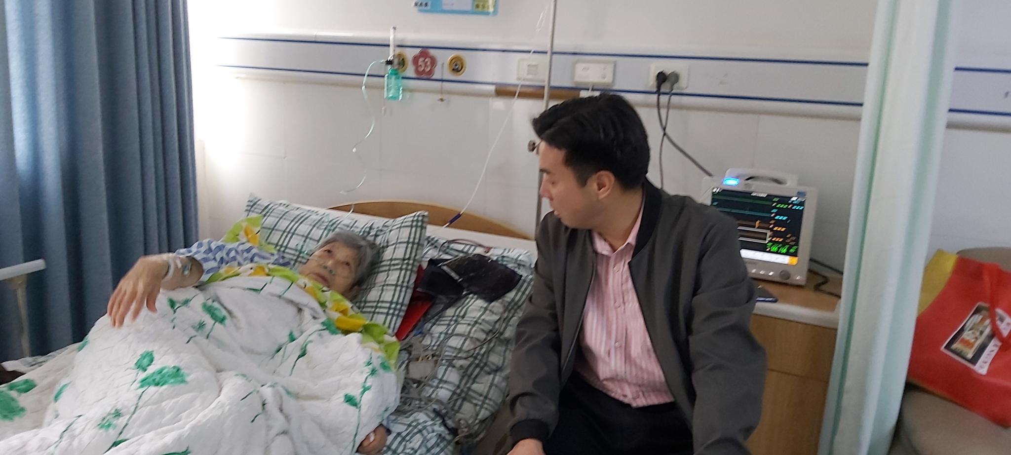 4月27日下午,必赢亚洲bwin官网工会副主席胡滨同志来到雅安市中医院看望因病住院的退休教师代明英。胡滨同志代表学院工会为代老师送上了慰问金和慰问品,详细询问了病情与治疗情况,并表示让代老师放心治疗,有什么困难可以向组织提出。代老师对学院领导的到来十分感动,她说到:“感谢学院的关心,感谢各位领导关心,我会积极配合治疗,争取早日康复。”。