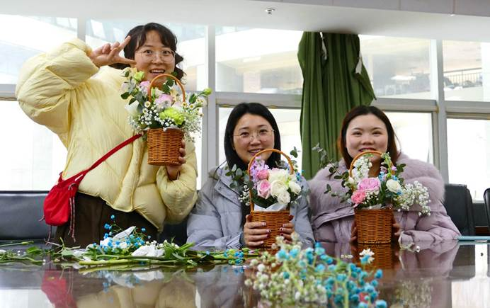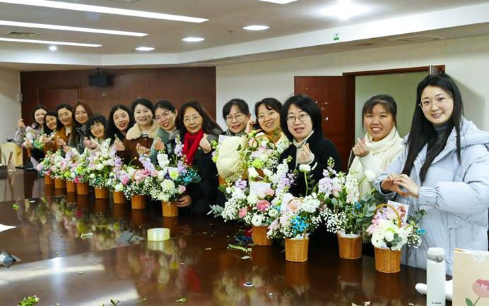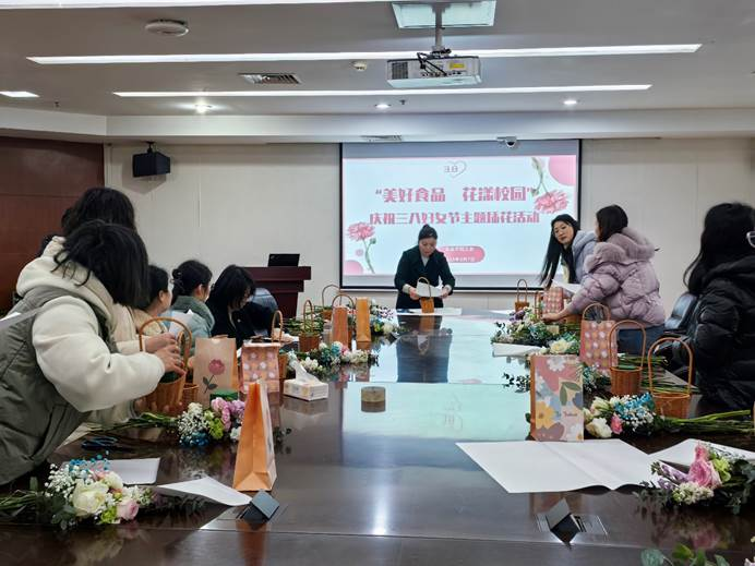 3月7日上午,必赢亚洲bwin官网工会在综合楼214会议室举办了“美好食品,花漾校园”庆祝三八妇女节主题插花活动,全院女教职工齐聚一堂,共庆“三八”国际劳动妇女节。