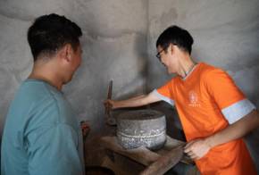 随后,陈安均带领同学们来到彝族村民家中,实地调研咂酒的工艺程序。“未达屋前,先闻其香”,经过玉米炒料、研磨、加水蒸馏、冷却加菌、装桶发酵等一系列工艺制作而成。通过村民的介绍与实地考察,师生团队对咂酒工序有了基本了解,发现彝族咂酒生产销售中存在的保质和包装等两大难题,陈安均结合实际情况从酿造技术、盛酒容器等多方面提出专业的改良建议,以提高咂酒品质、延长保存期限、增加销售价值,使产业振兴踏实落地。