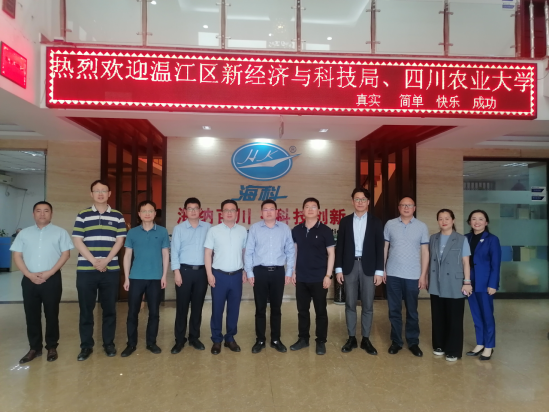 5月23日,必赢亚洲bwin官网院长方正锋教授受邀带队前往成都海科机械设备制造有限公司(下称“成都海科”)进行考查调研,与会人员包括成都市温江区新经济与科技局科技副局长史伟、科技创新人才科科长黄凯,海科公司董事长助理刘阳杰、高瞻,超级标品制造部销售经理何兵,就“校企地”深度合作、数字化食品科学与健康重点实验室建设、人才培养等进行探讨和交流。